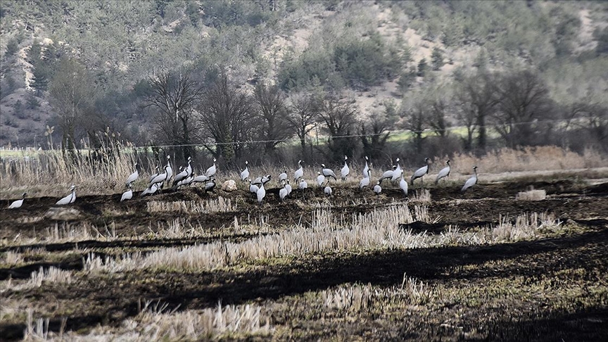 Göç yolundaki turnalar Sinop’taki Cuma Ovası'nda görüntülendi
