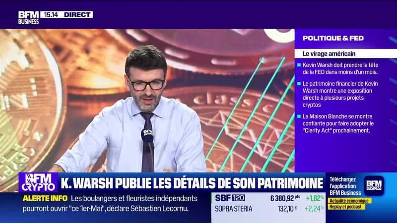 Vendredi 17 avril, les signaux techniques sur les cryptomonnaies, la zone à surveiller sur Ethereum, le lancement d'un ETF de Goldman Sachs exposé au Bitcoin, le record de staking sur Ethereum, l'investissement de Deutsche Börse dans Kraken, les profils des investisseurs crypto en Europe, les détails du patrimoine financier de Kevin Warsh, et le XRP moins exposé au risque quantique que le Bitcoin ont été abordés par Gilles Santacreu, trader algorithmique et administrateur du site Boursikoter.com, Claire Balva, directrice générale de l'Adan, et Thierry Boutrou, COO de Meria, reçus par Guillaume Sommerer, dans l'émission BFM Crypto, Les Pros sur BFM Business.