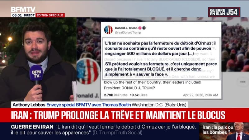 Donald Trump a annoncé une extension du cessez-le-feu entre les États-Unis et l'Iran mardi 21 avril au soir. Dans la nuit, le Pakistan, qui joue un rôle de médiateur, a salué cette annonce. Le vice-président américain JD Vance n'est finalement pas parti au Pakistan où des négociations avec l'Iran étaient prévues.