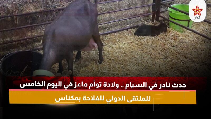 الرئيسية/فيديو/حدث نادر في السيام .. ولادة توأم ماعز في اليوم الخامس للملتقى الدولي للفلاحة بمكناس{"@context":"http:\/\/schema.org","@type":"BreadcrumbList","@id":"#Breadcrumb","itemListElement":[{"@type":"ListItem","position":1,"item":{"name":"\u0627\u0644\u0631\u0626\u064a\u0633\u064a\u0629","@id":"https:\/\/aldar.ma\/"}},{"@type":"ListItem","position":2,"item":{"name":"\u0641\u064a\u062f\u064a\u0648","@id":"https:\/\/aldar.ma\/category\/videos"}}]} فيديو حدث نادر في السيام .. ولادة توأم ماعز في اليوم الخامس للملتقى الدولي للفلاحة بمكناس 25 أبريل، 2026 25 أبريل، 2026 {"@context":"http:\/\/schema.org","@type":"Article","dateCreated":"2026-04-25T11:13:53+01:00","datePublished":"2026-04-25T11:13:53+01:00","dateModified":"2026-04-25T11:18:47+01:00","headline":"\u062d\u062f\u062b \u0646\u0627\u062f\u0631 \u0641\u064a \u0627\u0644\u0633\u064a\u0627\u0645 .. \u0648\u0644\u0627\u062f\u0629 \u062a\u0648\u0623\u0645 \u0645\u0627\u0639\u0632 \u0641\u064a \u0627\u0644\u064a\u0648\u0645 \u0627\u0644\u062e\u0627\u0645\u0633 \u0644\u0644\u0645\u0644\u062a\u0642\u0649 \u0627\u0644\u062f\u0648\u0644\u064a \u0644\u0644\u0641\u0644\u0627\u062d\u0629 \u0628\u0645\u0643\u0646\u0627\u0633","name":"\u062d\u062f\u062b \u0646\u0627\u062f\u0631 \u0641\u064a \u0627\u0644\u0633\u064a\u0627\u0645 .. \u0648\u0644\u0627\u062f\u0629 \u062a\u0648\u0623\u0645 \u0645\u0627\u0639\u0632 \u0641\u064a \u0627\u0644\u064a\u0648\u0645 \u0627\u0644\u062e\u0627\u0645\u0633 \u0644\u0644\u0645\u0644\u062a\u0642\u0649 \u0627\u0644\u062f\u0648\u0644\u064a \u0644\u0644\u0641\u0644\u0627\u062d\u0629 \u0628\u0645\u0643\u0646\u0627\u0633","keywords":[],"url":"https:\/\/aldar.ma\/429300.html","description":"https:\/\/www.youtube...