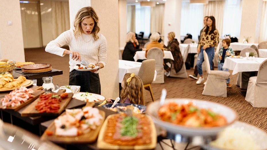 Hotel breakfast bandits caught on video grabbing food, skipping payment