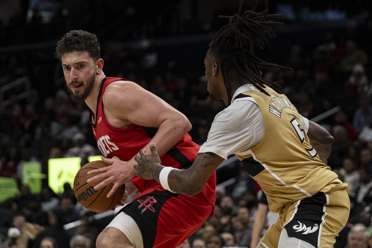 Milli basketbolcumuz Alperen Şengün'ün forma giydiği Houston Rockets, bu sezonki 50. galibiyetini aldı. Alperen 12 sayı, 14 ribauntla karşılaşmada double double yaptı. NBA'de Houston Rockets, Alperen Şengün'ün double-double yaptığı maçta Phoenix Suns’ı 119-105 mağlup ederek üst üste yedinci galibiyetini aldı. Mortgage Matchup Center'da Suns'a konuk olan Rockets'ta yaklaşık 28 dakika süre alan Alperen Şengün, 12 sayı, 14 ribaunt, 6 asistle oynadı. Sezonun 50. galibiyetini alan Batı Konferansı 5'incisi Rockets'ta Kevin Durant 24 ve Amen Thompson 22 sayı attı. Suns'ta Devin Booker'ın 31 ve Mark Williams'ın 19 sayısı, sezonun 36. yenilgisini engelleyemedi. THUNDER 63. GALİBİYETİNİ ALDI Batı Konferansı lideri Oklahoma City Thunder, Crypto.com Arena'da konuk olduğu Los Angeles Lakers'ı 123-87 mağlup etti. Arka arkaya 6 olmak üzere 63. galibiyetini elde eden Thunder'da Shai Gilgeous-Alexander 25 ve Isaiah Joe 18 sayı kaydetti. Batı Konferansı 4'üncüsü Lakers'ta ise Rui Hachimura'nın 15, Drew Timme ve Nick Smith Jr'ın 11'er sayısı, art arda 3, sezonun 29. mağlubiyetini önleyemedi. www.sozcu.com.tr internet sitesinde yayınlanan yazı, haber ve fotoğrafların her türlü telif hakkı Mega Ajans ve Rek. Tic. A.Ş'ye aittir. İzin alınmadan, kaynak gösterilerek dahi iktibas edilemez. Bu habere emoji ile tepki ver