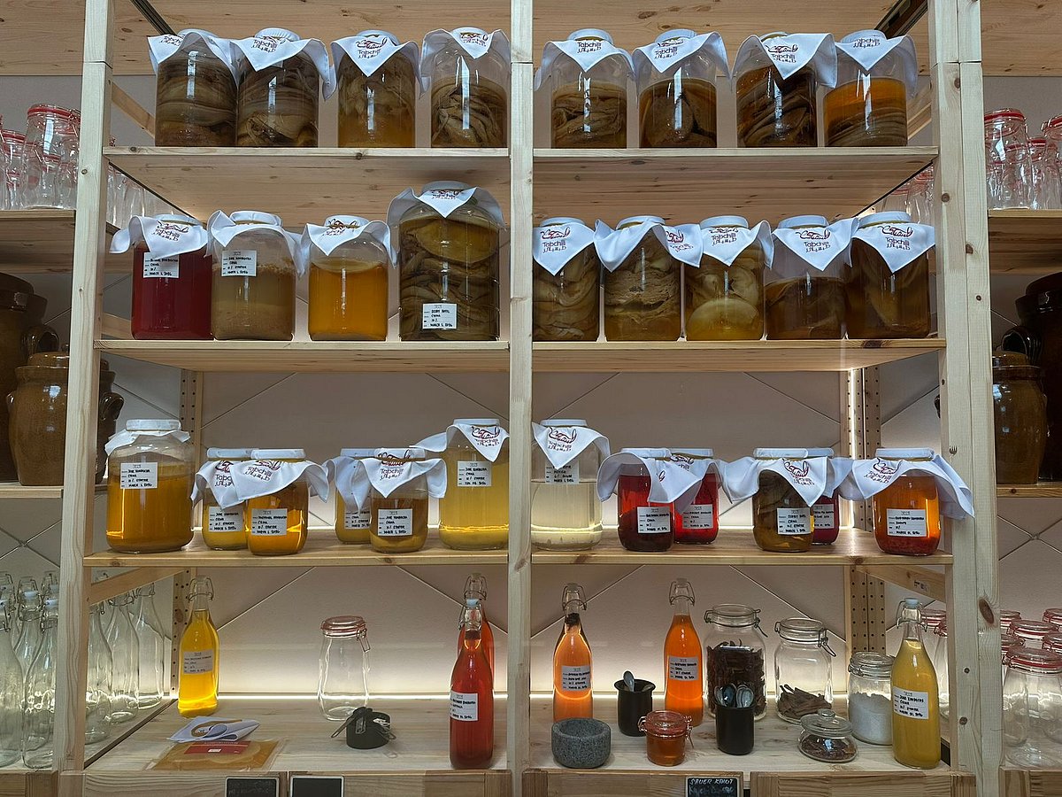 Inside though, the space opens up into rows of colourful jars, fermentation rooms, and shelves that quietly map out a very specific passion of fermented food.