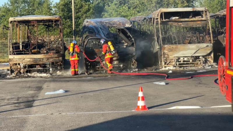 BFM-bfmdiciHuit bus scolaires incendiés à Manosque, 40 pompiers mobilisés et une enquête ouvertePartagerPartagerWhatsappLinkedInMailmessengerPublié aujourd'hui à 09h57 Lire dans l'appBFM DICI Loïc Guerringue avec Mathias FleuryPartager Des bus scolaires ont été incendiés à Manosque ce mardi 28 avril, dont un partiellement. Une enquête a été ouverte pour destruction du bien d'autrui par moyen dangereux pour les personnes.if(smartInit){didomiNextConsent(45,(function(){Hubvisor("ready",null,(function(){sas.cmd.push((function(){sas.render("98")}))}))}))}Huit bus de ramassage scolaire ont été incendiés à Manosque, ce mardi 28 avril, a appris BFM DICI. Au moins 40 sapeurs-pompiers, alertés par un voisin, sont intervenus sur place.Les faits ont eu lieu au sein de la zone industrielle Saint-Maurice mardi vers 20h30. Sept véhicules ont été entièrement détruits par les flammes, tandis qu'un huitième véhicule a été partiellement touché.if(smartInit){didomiNextConsent(45,(function(){Hubvisor("ready",null,(function(){sas.cmd.push((function(){sas.render("76194")}))}))}))}Des investigations en coursAucune victime n'est à déplorer et la circulation des transports scolaires n'a pas été modifiée en raison du sinistre. Les bus, appartenants à Trans'Agglo, seront remplacés. Transdev' assure ainsi que la "continuité des services sera assurée".Une enquête a été ouverte pour "destruction du bien d'autrui par moyen dangereux pour les personnes". Des investigations sont en cours pour identifier les possibles auteurs du feu, alors qu'aucune interpellation n'a eu lieu à l'heure actuelle.if(smartInit){didomiNextConsent(45,(function(){Hubvisor("ready",null,(function(){sas.cmd.push((function(){sas.render("135327")}))}))}))}window.nextScriptsToExecute&&window.nextScriptsToExecute.push((function(){if(window.deviceSize==="L"){document.querySelector(".display_ads_mobile").remove()}}));Les plus lus"Sans nous, vous parleriez français": la petite pique du roi Charles III face à Donald Tru...