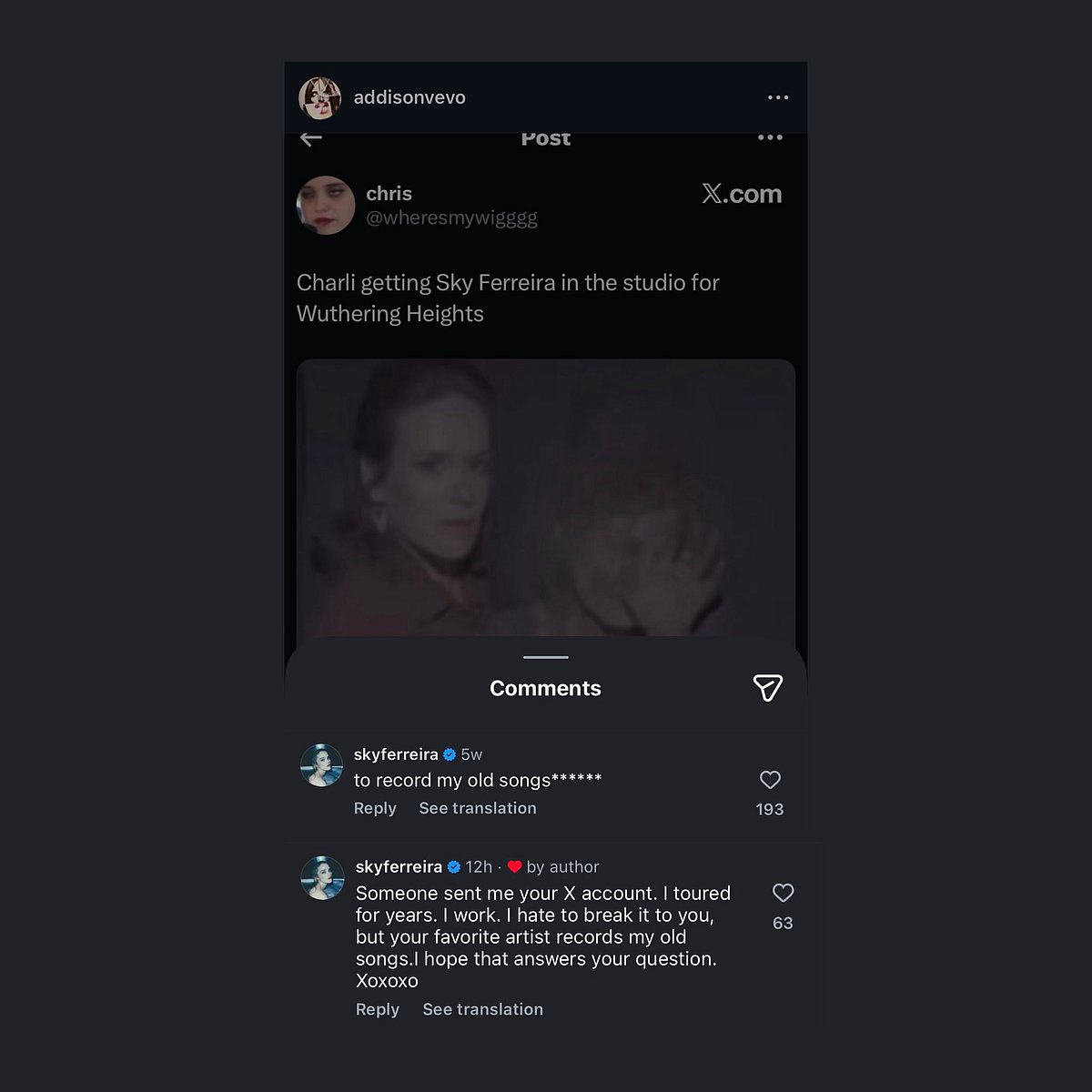 For now, two things are clear: Charli XCX's team maintains that everything was handled correctly and transparently, and Sky Ferreira maintains she has the proof to say otherwise.