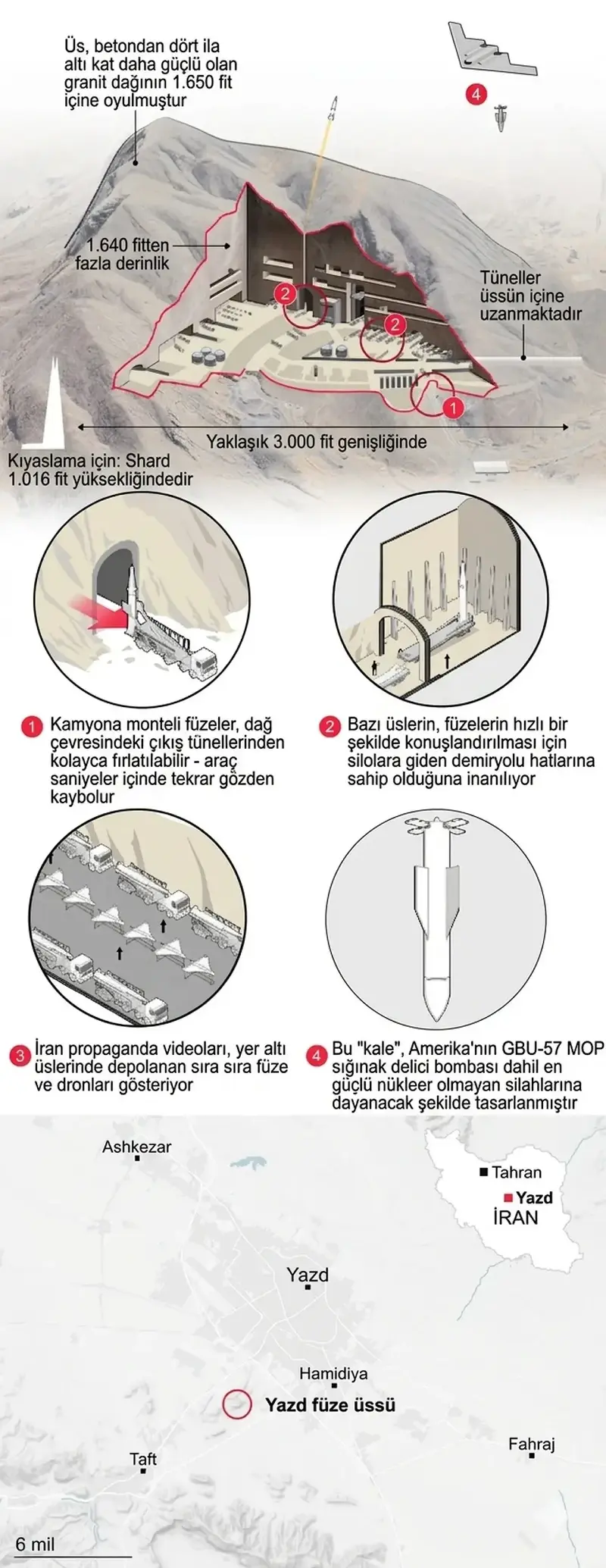 Sahadaki son veriler, İran’ın "füze şehirleri" olarak bilinen yeraltı tesislerinin, dünyanın en güçlü sığınak delici bombalarına karşı devasa bir koruma sağladığını gösteriyor.
