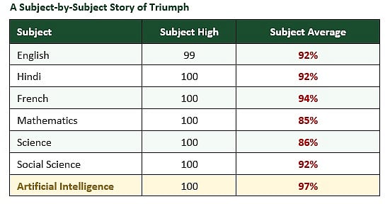 The results, released by the Central Board of Secondary Education (CBSE), revealed that JSS Al Safa's students outperformed across all nine subjects — English, Hindi, French, Mathematics, Science, Social Science (SST), Artificial Intelligence, Painting, and Elements of Business — with subject averages that would be the envy of institutions far beyond the UAE.