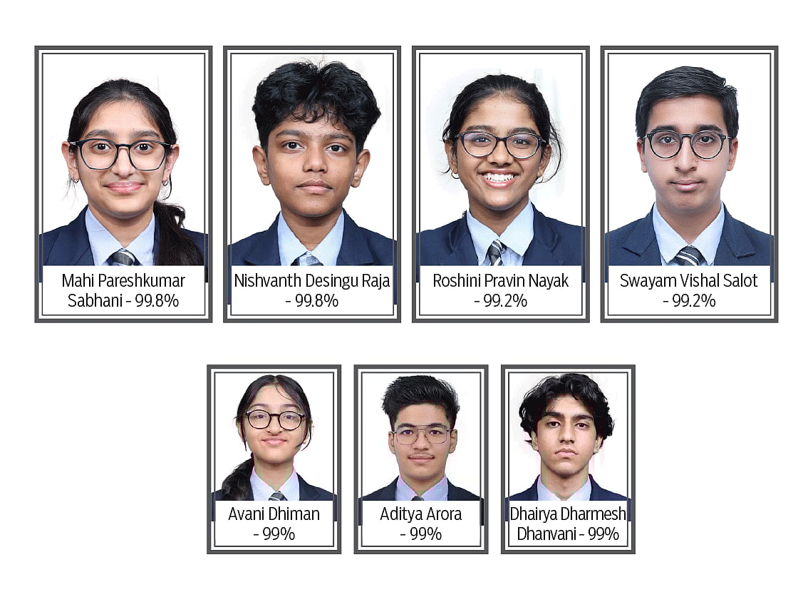 Leading the school's charge were Mahi Pareshkumar Sabhani and Nishvanth Desingu Raja, both of whom achieved a breathtaking average of 99.8% with a total of 499 out of 500 marks — placing them at the very pinnacle of this year's results. Close on their heels were Roshini Pravin Nayak and Swayam Vishal Salot, both scoring 99.2% with 496 marks, while Avani Dhiman, Aditya Arora, and Dhairya Dharmesh Dhanvani rounded off an elite group with 99% and 495 marks each.