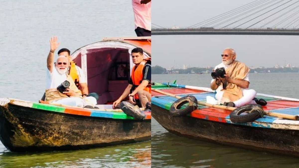 कोलकाता में बेलूर मठ के किनारे गंगा में बोटिंग करते पीएम मोदी ने शेयर की तस्वीरें