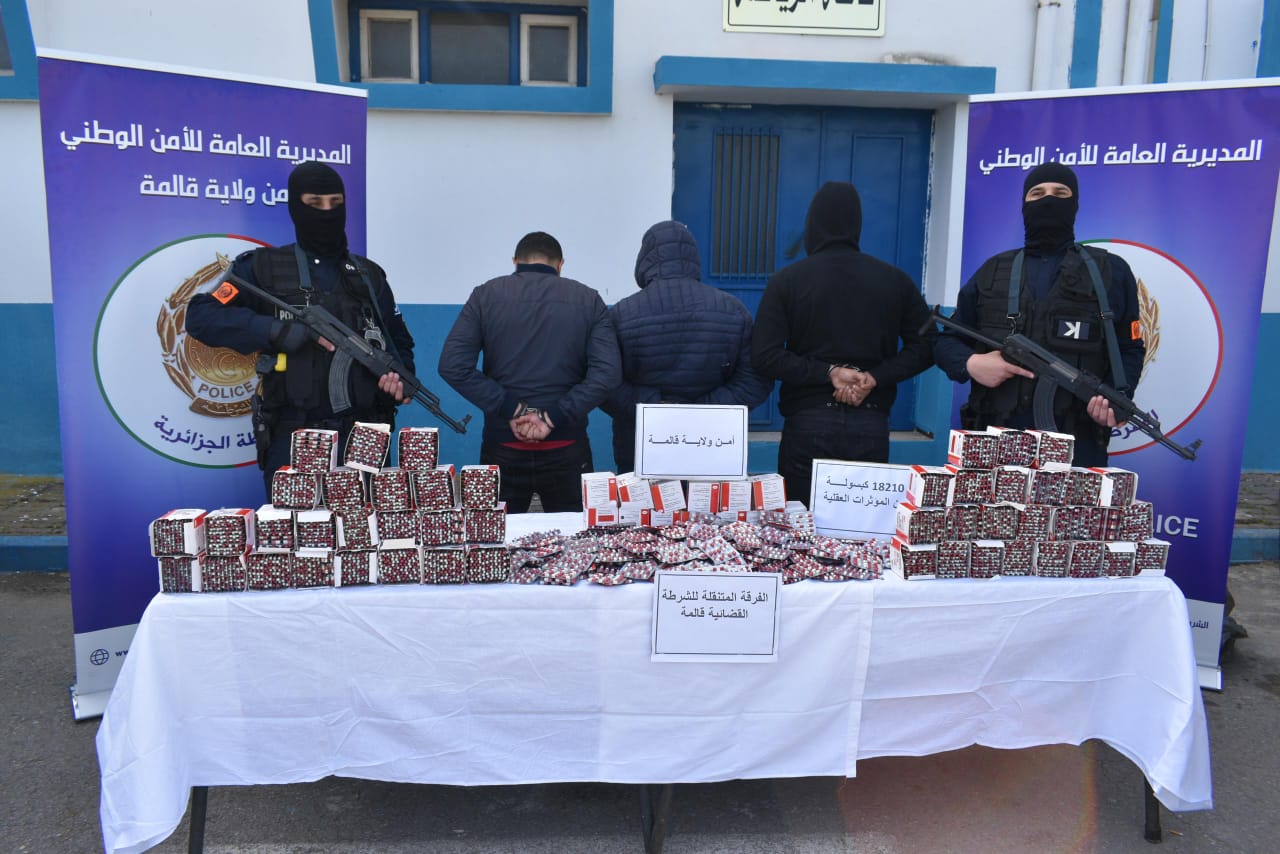 قالمة: توقيف جماعة إجرامية وحجز أكثر من 18 ألف قرص مهلوس