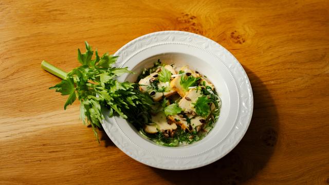 { "@context": "https://schema.org", "@type": "ImageObject", "url": "https://img.zeit.de/zeit-magazin/wochenmarkt/2026-04/kaese-liebstoeckel-brot-rezept-bild-06/super__620x413", "width": 620, "height": 413, "copyrightHolder": { "@type": "Person", "name": "\u00a9\u00a0Sebastian K\u00f6nig f\u00fcr ZEITmagazin Wochenmarkt" } } Liebstöckel hat einen intensiven Geschmack – perfekt zu kräftigem Käse. © Sebastian König für ZEITmagazin Wochenmarkt Z+ (abopflichtiger Inhalt); Käse mit Liebstöckel: Liebstöckel? Lieb's! Wenn im April der Liebstöckel sprießt, sollte man ihn sich schnappen: Er verfeinert Salate genauso wie Rinderbrühen. Oder, wie hier, eine deftige Brotzeit mit Käse. Ein Rezept von Gabriele Hussenether Aus der Serie: Küchenzuruf Aktualisiert am 17. April 2026, 5:38 Uhr Schließen Veröffentlicht am einfachunter 30 Minutenvegan 1 Kommentare Wenn die Blätter des Liebstöckel ab April wieder aus der Erde sprießen, erinnert mich das an meine Kindheit. Im Garten meiner Oma wuchs eine große Liebstöckelstaude, die jedes Jahr nach dem Winter zuverlässig neu austrieb. Die ersten zarten Blättchen waren bei uns allen heiß begehrt, denn Liebstöckel wertet mit seiner delikaten Würze viele Gerichte auf. Es heißt ja nicht umsonst Maggikraut – auch, wenn in besagter Würzsoße selbst keinerlei Liebstöckel drin ist. Roh passt es gut unter Salate, gedünstet ins Gemüse wie Spinat oder Kohlrabi, und für gekochtes Fleisch dient es als Aromaträger. Es verfeinert Tees, Fonds, Butter und Öle und eignet sich zum Trocknen.