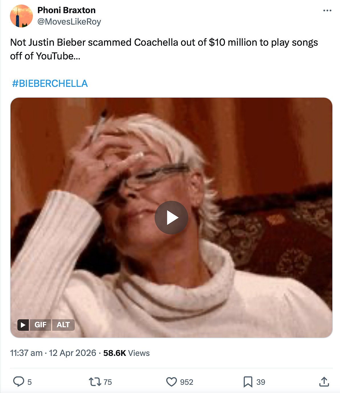 Bieber's performance was unlike anything Coachella has seen in recent memory, and that was entirely by design. The 32-year-old took to a stripped-back stage dressed in a hoodie and shorts, sat in front of a laptop and spent much of the night singing along to YouTube videos of his older hits including Baby and Never Say Never.