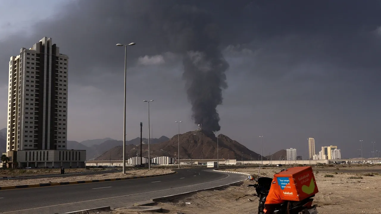 تصاعد الدخان في منطقة الصناعات النفطية بالفجيرة بعد سقوط حطام طائرة مسيّرة جرى اعتراضها / Reuters