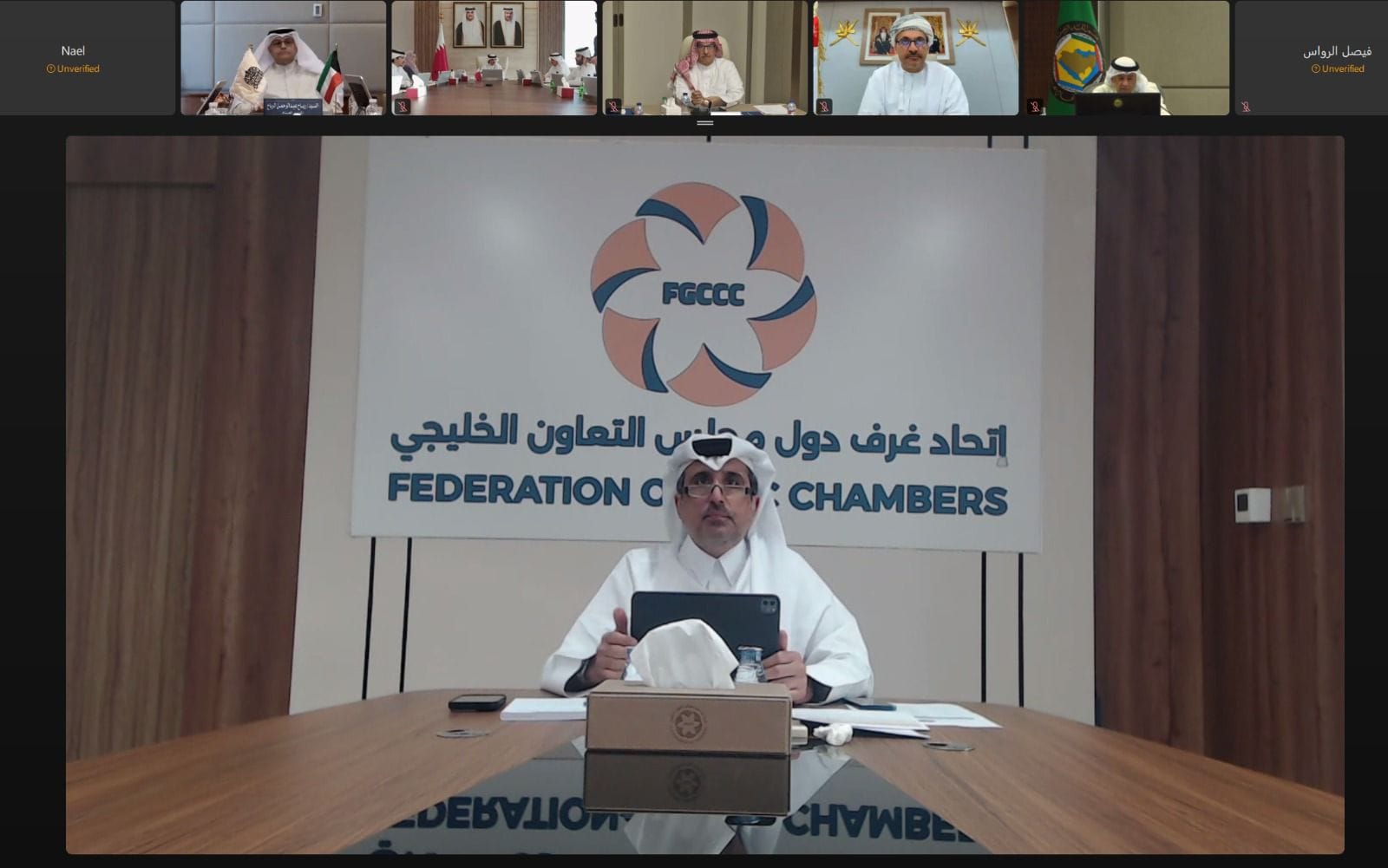 عقد مجلس إدارة اتحاد غرف دول مجلس التعاون الخليجي اجتماعه الـ68 عبر تقنية الاتصال المرئي برئاسة الشيخ خليفة بن جاسم بن محمد آل ثاني، رئيس الاتحاد ورئيس غرفة قطر، وبمشاركة أصحاب السعادة رؤساء الاتحاد والغرف التجارية والصناعية بدول مجلس التعاون الخليجي، السيد صالح بن حمد الشرقي الأمين العام للاتحاد.