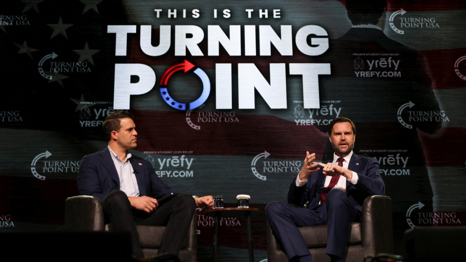 وتولّى المدير التنفيذي لـTurning Point أندرو كولفيت طرح الأسئلة على فانس بدلاً من إريكا كيرك، التي تولّت قيادة المنظمة بعد اغتيال زوجها تشارلي كيرك.