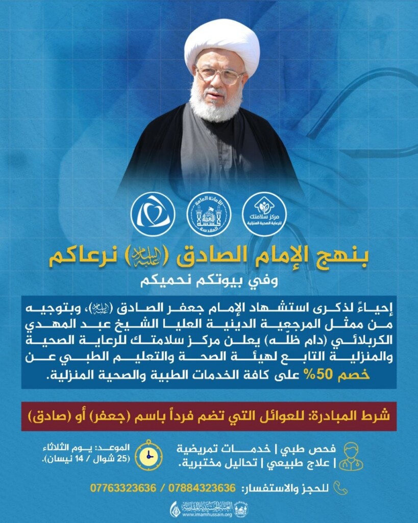 خصم 50% لحاملي اسم "جعفر أو صادق" عند مراجعة مركز سلامتك.. مبادرة الشيخ الكربلائي
