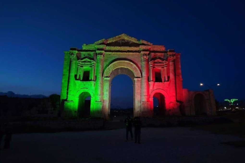 إضاءة مواقع أثرية بألوان العلم الأردني احتفالاً بيوم العلم