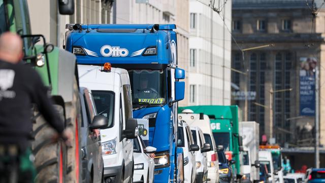 Konvoi in Leipziger Innenstadt: Speditionen protestieren in Leipzig gegen hohe Spritpreise