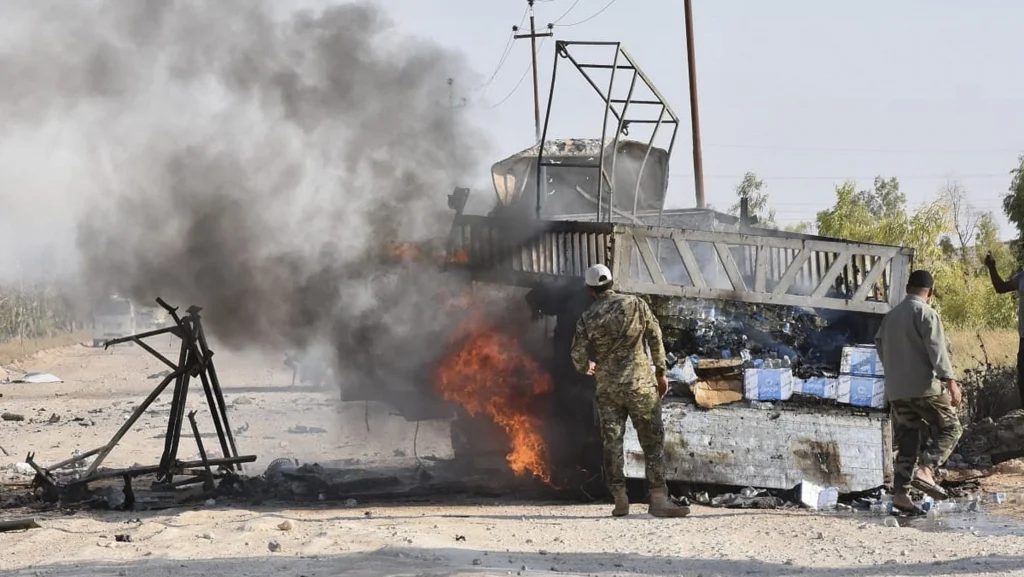 منتسبو حشد يقفون إلى جانب شاحنة محترقة عقب هجوم بطائرة مسيّرة نُسب إلى إسرائيل قرب معبر القائم الحدودي في الأنبار، في 25 أغسطس/آب 2019. (صورة: AP) [icon="negwbi1xcQy3"] { mask: url(https://964media.com/core/views/b28bf1145a/assets/icons/facebook.svg) no-repeat center; -webkit-mask: url(https://964media.com/core/views/b28bf1145a/assets/icons/facebook.svg) no-repeat center; mask-size: contain; -webkit-mask-size: contain; background-color: #000000; width: 20px; height: 20px; display: inline-block; } [icon="LQrpXnULwlON"] { mask: url(https://964media.com/core/views/b28bf1145a/assets/icons/twitter.svg) no-repeat center; -webkit-mask: url(https://964media.com/core/views/b28bf1145a/assets/icons/twitter.svg) no-repeat center; mask-size: contain; -webkit-mask-size: contain; background-color: #000000; width: 20px; height: 20px; display: inline-block; } [icon="GH6Ri7s5GPzs"] { mask: url(https://964media.com/core/views/b28bf1145a/assets/icons/linkedin.svg) no-repeat center; -webkit-mask: url(https://964media.com/core/views/b28bf1145a/assets/icons/linkedin.svg) no-repeat center; mask-size: contain; -webkit-mask-size: contain; background-color: #000000; width: 20px; height: 20px; display: inline-block; } [icon="q1xDit4YzbeM"] { mask: url(https://964media.com/core/views/b28bf1145a/assets/icons/whatsapp.svg) no-repeat center; -webkit-mask: url(https://964media.com/core/views/b28bf1145a/assets/icons/whatsapp.svg) no-repeat center; mask-size: contain; -webkit-mask-size: contain; background-color: #000000; width: 20px; height: 20px; display: inline-block; } [icon="MpXzW9qifCBN"] { mask: url(https://964media.com/core/views/b28bf1145a/assets/icons/telegram.svg) no-repeat center; -webkit-mask: url(https://964media.com/core/views/b28bf1145a/assets/icons/telegram.svg) no-repeat center; mask-size: contain; -webkit-mask-size: contain; background-color: #000000; width: 20px; height: 20px; display: inline-block; } [icon="oThAkHIhzR8N"] { mask: url(https://964media.com/core/views/b28bf1145a/ass...