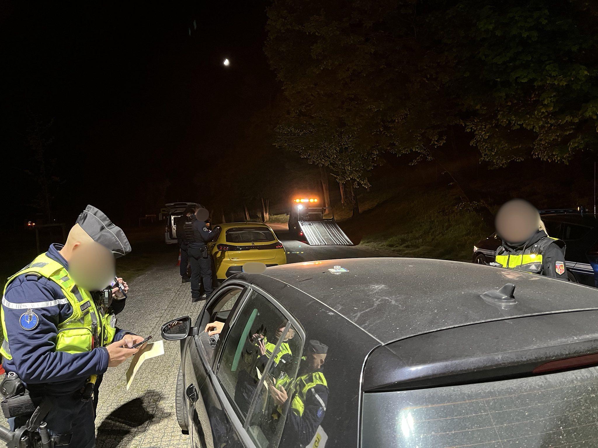 La totalité des véhicules arrêtée sur l’A40 lors d’un contrôle géant entre Genève et Lyon Par Justin Boche, Le Figaro Lyon Le 29 avril 2026 à 11h14 Sujets contrôle de police Gendarmerie Autoroute Lire dans l’app Sauvegarder Nouvelle fonctionnalité ! Avec votre compte, vous pouvez désormais sauvegarder des articles pour les lire plus tard sur tous vos appareils. Sauvegarder Fermer Sauvegarder un article Pour sauvegarder un article vous devez être connecté, vous pourrez ainsi les consulter sur tous vos appareils. Créer un compte Se connecter Copier le lien Lien copié Mail Facebook X Linkedin Messenger WhatsApp Plus de 30 gendarmes et équipes cynophiles ont été mobilisés pour contrôler près de 155 véhicules et 220 personnes. Gendarmerie du Rhône Les gendarmes de l’Ain ont mené un contrôle routier de grande envergure, jeudi dernier, sur cet axe régulièrement emprunté par les trafiquants. Passer la publicité Passer la publicité Publicité Une opération de contrôle routier nocturne de grande envergure menée par la gendarmerie de l’Ain a eu lieu jeudi dernier sur l’autoroute A40 entre Lyon et Genève, sur l’aire de Neuville-sur-Ain. Plus de 30 gendarmes et équipes cynophiles ont été mobilisés pour contrôler près de 155 véhicules et 220 personnes. 100% du flux autoroutier transfrontalier et interrégional a été contrôlé, indique la préfecture de l’Ain. Et d’ajouter : «Tenir le terrain. Contrôler les flux. Frapper là où les trafics empruntent nos axes. La gendarmerie nationale mène régulièrement des opérations de contrôle massif, la nuit, sur les autoroutes de l’Ain. Notre département est un carrefour : entre Lyon et Genève, entre la plaine et la montagne. Cette géographie, les trafiquants la connaissent. Nos gendarmes aussi.» Passer la publicité Publicité Enquête ouverte pour « trafic de stupéfiants » Selon les chiffres de la préfecture, neuf grands excès de vitesse ont été signalés dont un à 190 km/h et un autre à 161 km au lieu de 110 km/h. Les forces de l’ord...