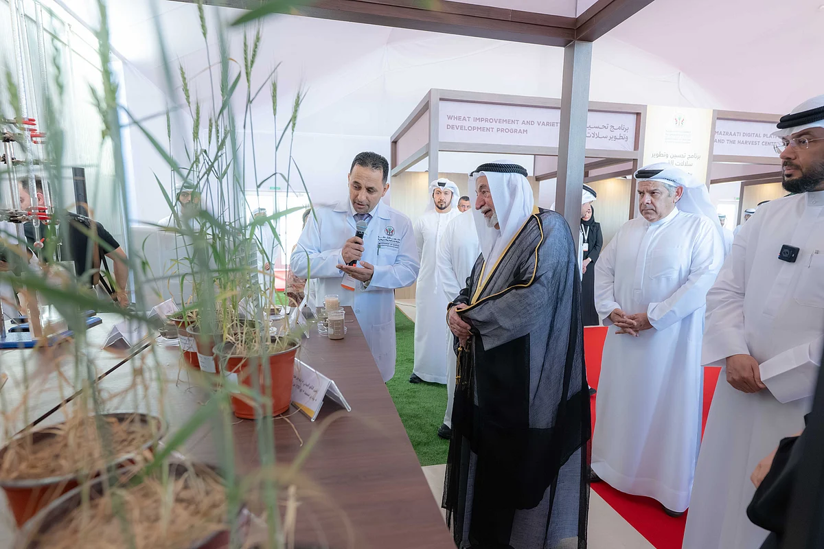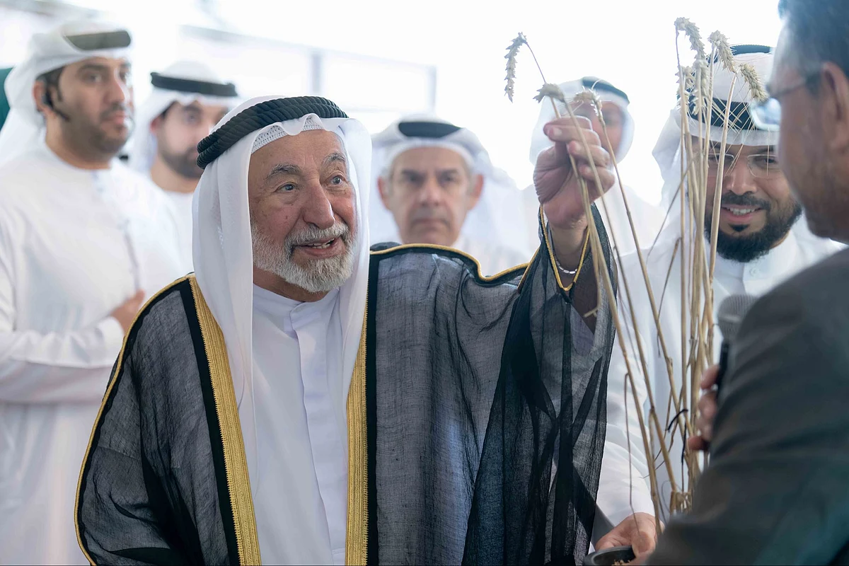 Supporting farmers: Sheikh Dr Sultan bin Mohammed Al Qasimi, Supreme Council Member and Ruler of Sharjah, attended the harvest ceremony for the fourth season of the Seven Spikes wheat farm in Mleiha