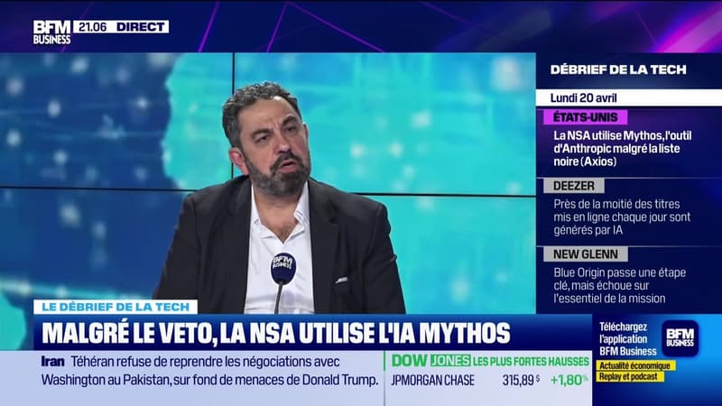 Ce lundi 20 avril, Frédéric Simottel a reçu Stéphane Zibi, consultant spécialiste en transformation numérique et en IA, Bruno Guglielminetti, journaliste et animateur de "Mon Carnet de l'actualité numérique", et Philippe Dewost, fondateur de Phileos et cofondateur de Wanadoo. Ils se sont penchés sur l'utilisation de l'IA Mythos par la NSA malgré la liste noire du Pentagone, près de la moitié des titres mis en ligne sur Deezer chaque jour générés par l'IA, et la relance du duel entre Blue Origin et SpaceX, dans l'émission Tech & Co, la quotidienne, sur BFM Business. Retrouvez l'émission du lundi au jeudi et réécoutez la en podcast.