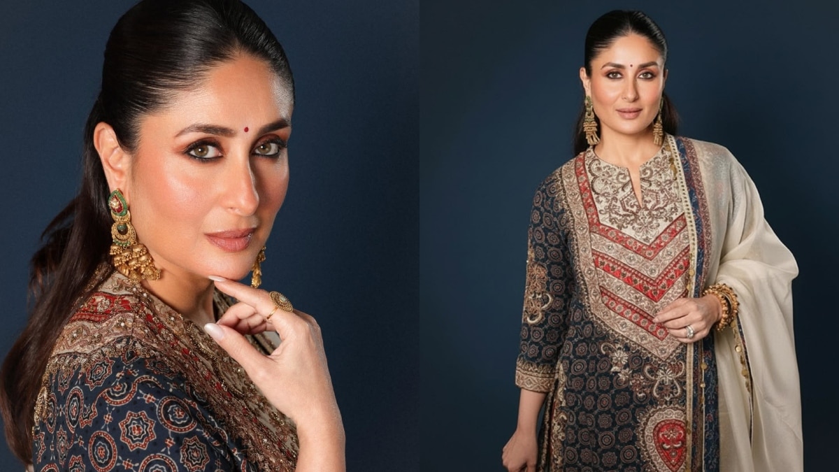 माथे पर बिंदी लगा 'देसी क्वीन' बनीं करीना, लाखों के अजरख प्रिंट सूट में ढाया कहर