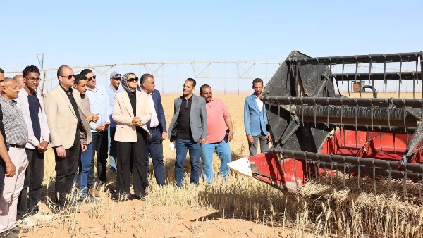 محافظ الوادي الجديد تشهد حصاد محصول القمح بالداخلة