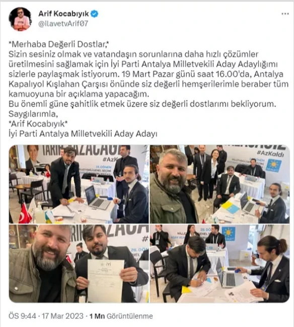 Provokatör Arif Kocabıyık, bir önceki genel seçimlerde İYİ Parti'den Antalya milletvekili aday adayı olmuştu.