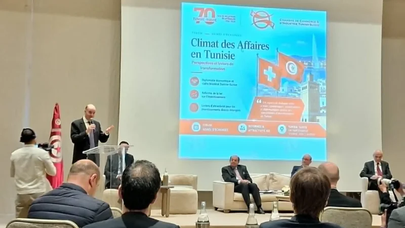 طرحت غرفة التجارة والصناعة التونسية السويسرية، خلال اللقاء الثاني مع ممثلي هياكل الحكومة التونسية مسألة "مناخ الأعمال في تونس: الآفاق وركائز التحول"