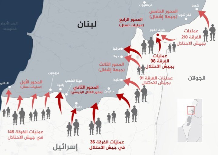 ووفق ما أوردته صحيفة يديعوت أحرونوت، أعاد الجيش الإسرائيلي ترتيب تموضعه عبر ثلاث طبقات ميدانية تمتد من الشريط الحدودي إلى عمق الأراضي اللبنانية. ويشمل النطاق الأول، المعروف بـ”الخط الأحمر”، القرى المحاذية للحدود، والتي شهدت دماراً واسعاً خلال العمليات الأخيرة، بالتوازي مع إقامة مواقع عسكرية ثابتة في عدد من النقاط.