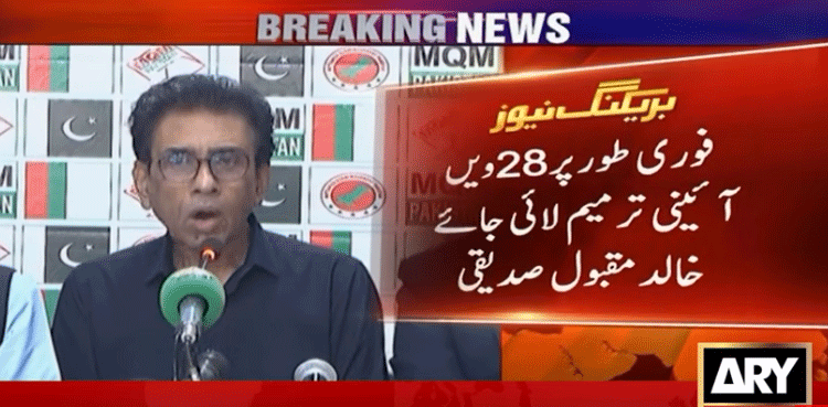 Addressing a press conference in Karachi, MQM-P Convener and Federal Minister for Education and Professional Training Khalid Maqbool Siddiqui said the party was demanding the immediate introduction of the amendment.
