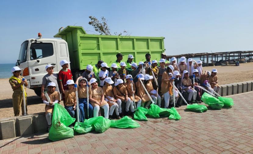 مشاركة طلبة المدارس في حملة تنظيف الشواطئ بمسقط