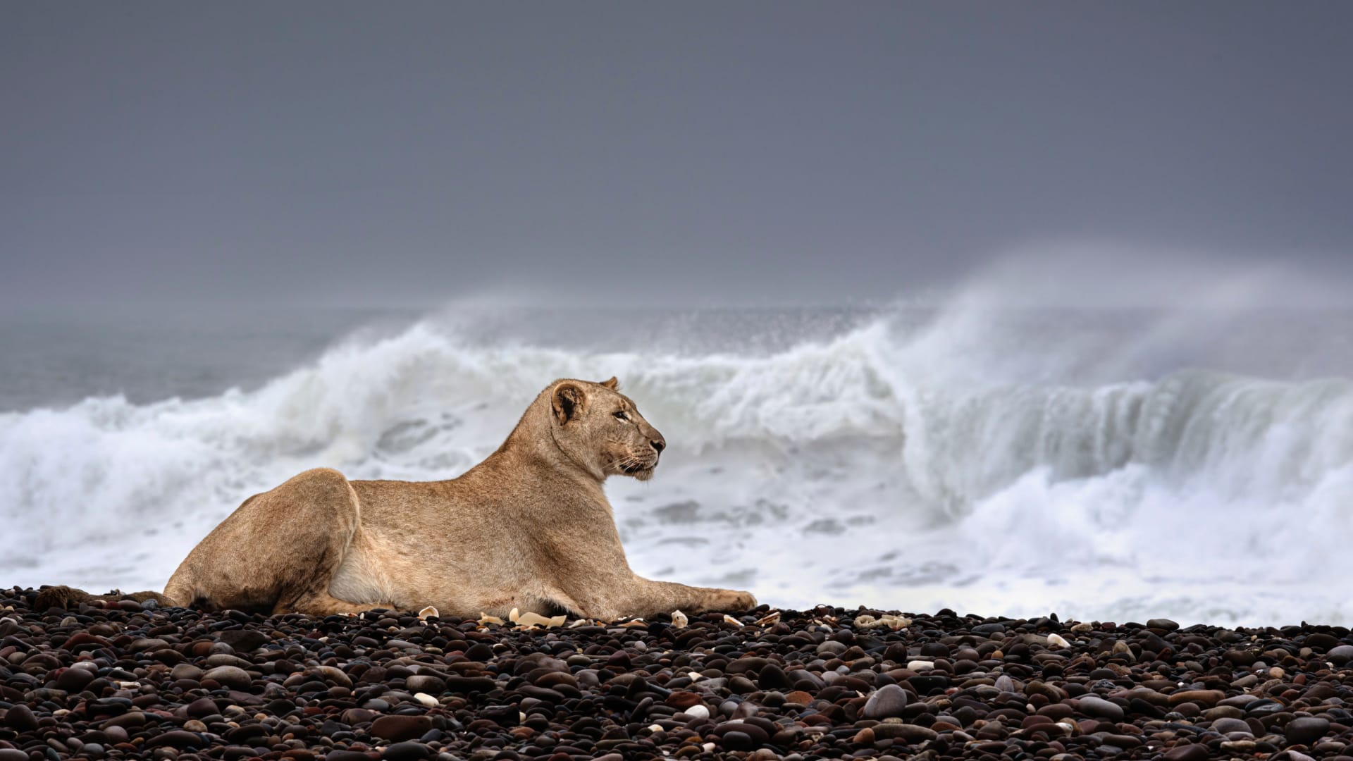 مصورة توثق أسودًا تعيش على شواطئ البحر بدلًا من الغابات من أجل للبقاء