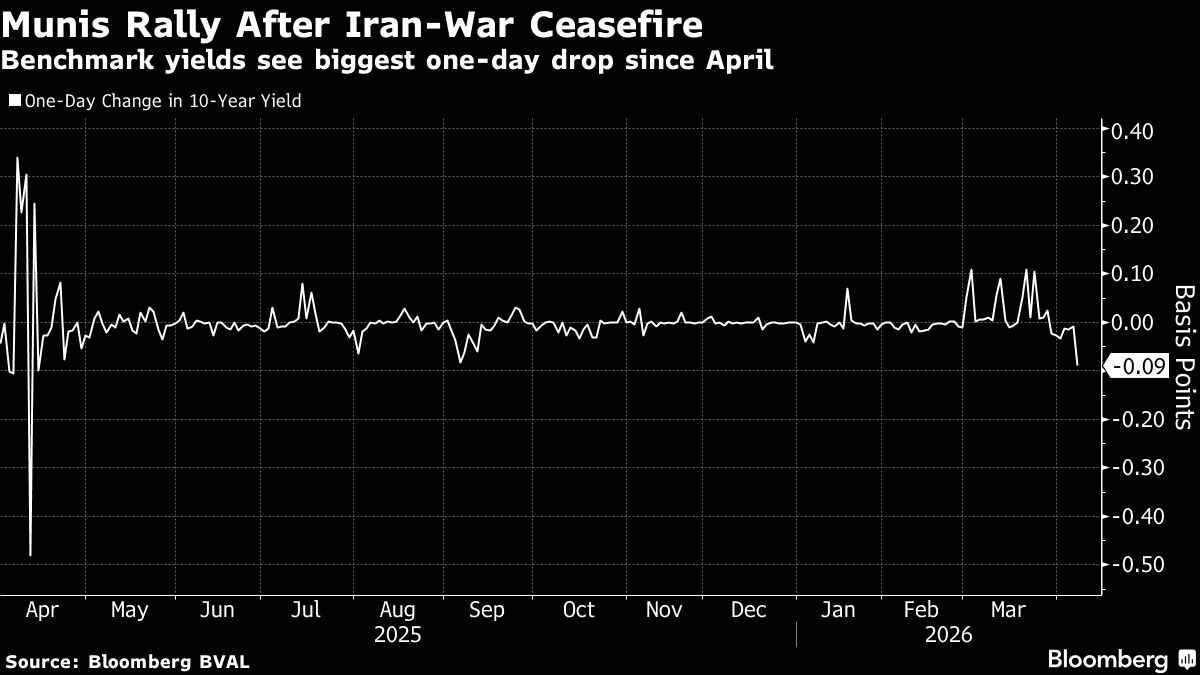 State and local government bonds surged by the most in a year after the ceasefire to the US war against Iran unleashed relief rallies across global financial markets.