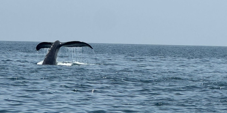 مياه “مصيرة” تحتضن حوتين أحدبين خلال حالة تغذية نشطة
