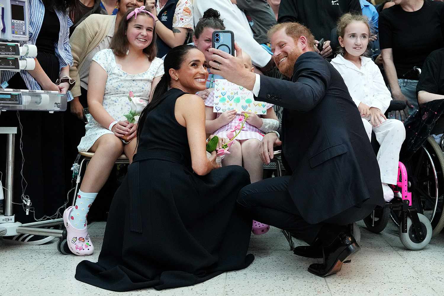 وفي بداية الزيارة، يوم الثلاثاء، زار الأمير هاري وماركل "مستشفى الأطفال الملكي" في ملبورن، حيث احتشد المئات في بهوه لاستقبالهما. وزارت ماركل ملجأً للنساء في ملبورن، حيث قدمت أطباق الفريتاتا للزائرات.