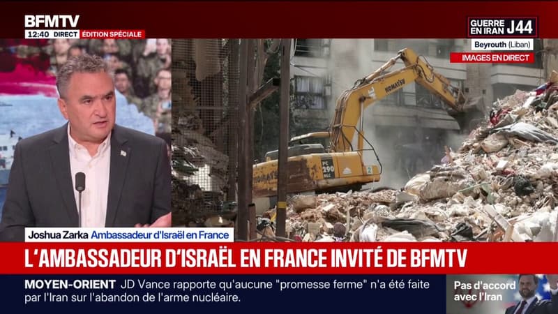 BFM-International-Moyen-Orient-IranNégociations entre les États-Unis et l'Iran: "Ce qu'il reste du régime iranien n'a ni le courage, ni le caractère (...) d'arrêter la guerre", estime l'ambassadeur d'Israël en FranceJoshua Zarka, ambassadeur d'Israël en France, était l'invité de BFMTV au lendemain de l'échec des négociations entre les États-Unis et l'Iran.Aujourd'hui à 12h47 | Durée : 1:36PartagerX
