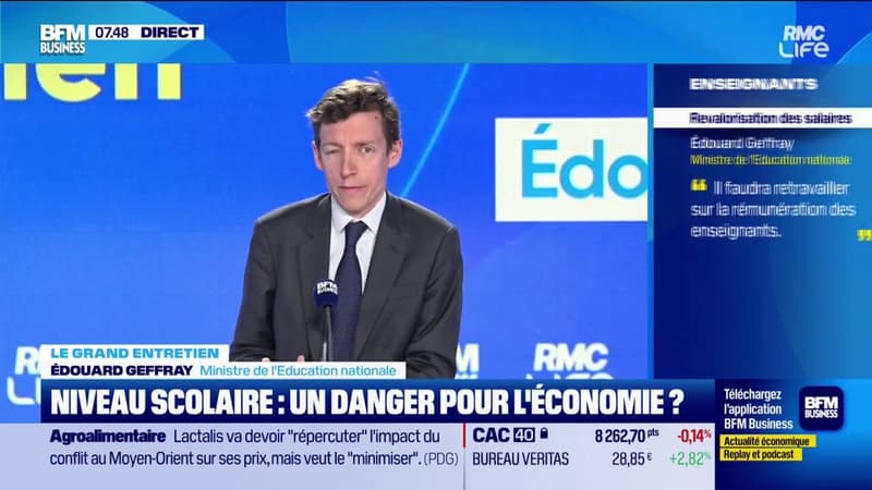 "Nous inversons la tendance. Nous progressons en mathématiques, à l'école mais il y a encore du travail à faire au collège" détaille Édouard Geffray, ministre de l'Education nationale sur le plateau de Good Morning Business.