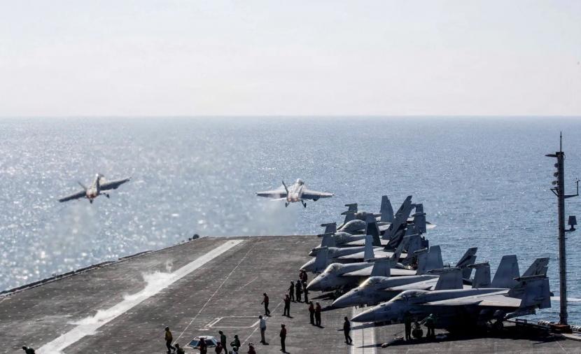 دخل اتفاق وقف إطلاق النار بين الولايات المتحدة وإيران يومه السابع، وسط تقارير إعلامية بنشر أكثر من 15 سفينة حربية أميركية ضمن تحركات تهدف إلى فرض حصار بحري على إيران، وفق ما نقلته "وول ستريت جورنال"،
