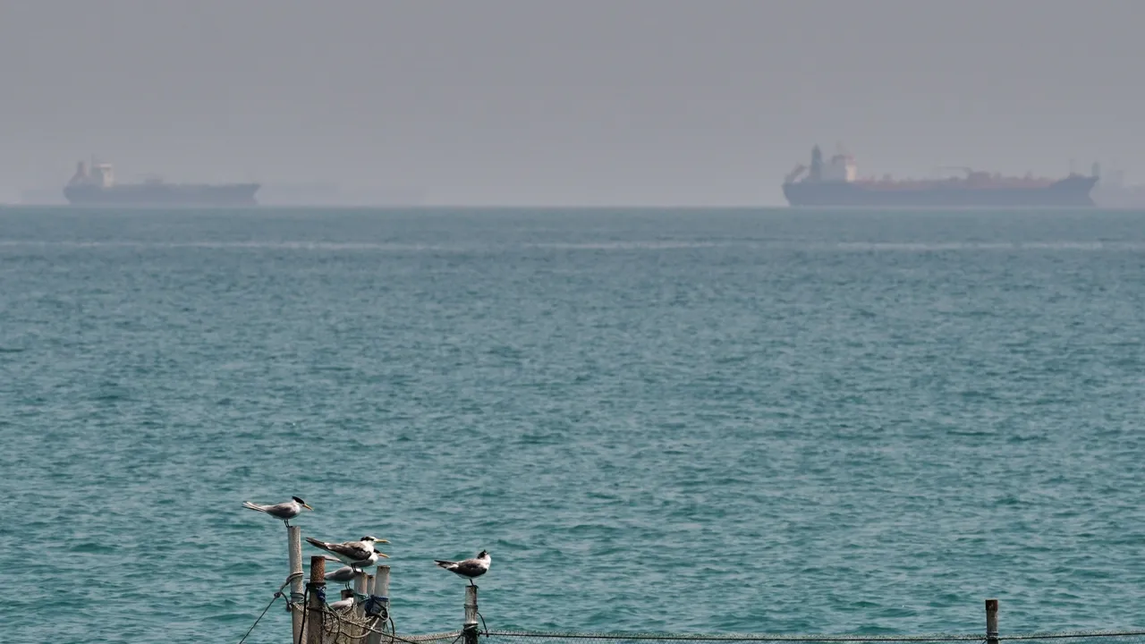 ناقلات نفط راسية في مضيق هرمز قبالة سواحل جزيرة قشم، إيران، 18 أبريل/نيسان 2026 / AP