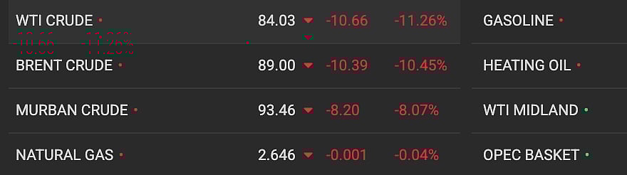 Brent crude fell (down 11.26% to $84.03 as of 9.50 Beijing time); US West Texas Intermediate (WTI) futures down 10.45% to $89 late on Friday as traders anticipated a potential return of supply.