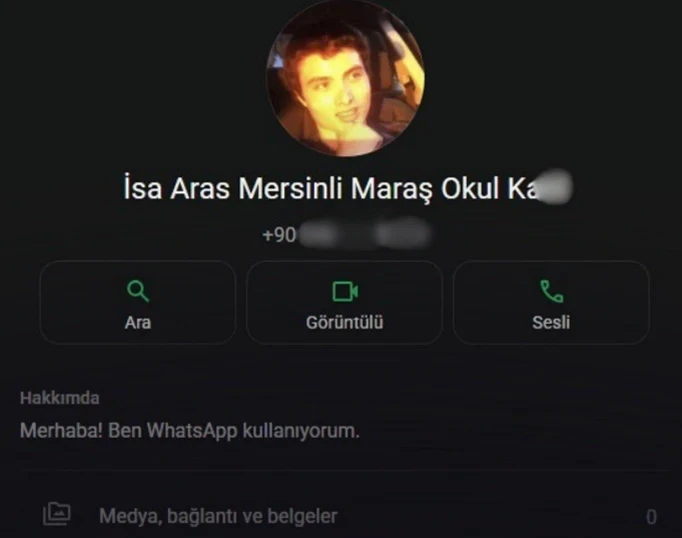 Katil İsa Aras Mersinli'nin WhatsApp profil fotoğrafının, ABD'de altı kişinin katili 'incel' Elliot Rodger olduğu ortaya çıktı.