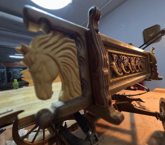 Osmanlı döneminin yaylı at arabası talikanın minyatürü, naht ve tezhip motifleriyle süslendi