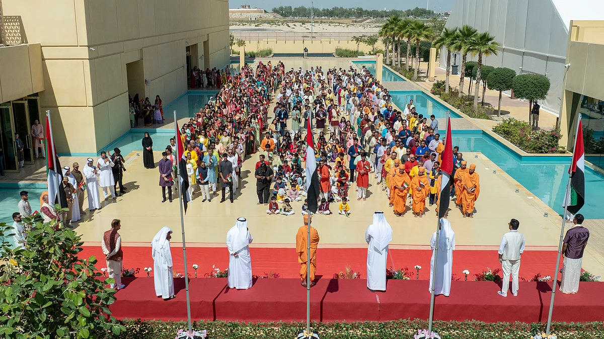 Reflecting on the significance of the occasion, Swami Brahmaviharidas, Head of BAPS Hindu Mandir Abu Dhabi, said, "This is a gathering of gratitude, and a celebration of a Nation where we feel at home, safe and secure. As we fly the flag high, let our unity and solidarity fly higher for love, peace, and harmony. A country is not measured by the size of its land, wealth or population; but by the quality and character of its people and the vision, values and wisdom of its leaders. My innermost gratitude for the able, stable and commendable leadership of His Highness Sheikh Mohamed bin Zayed Al Nahyan, and the whole of the UAE, for leading us all through challenging times, for protecting one and all, and respecting each one of us as an Emirati”.