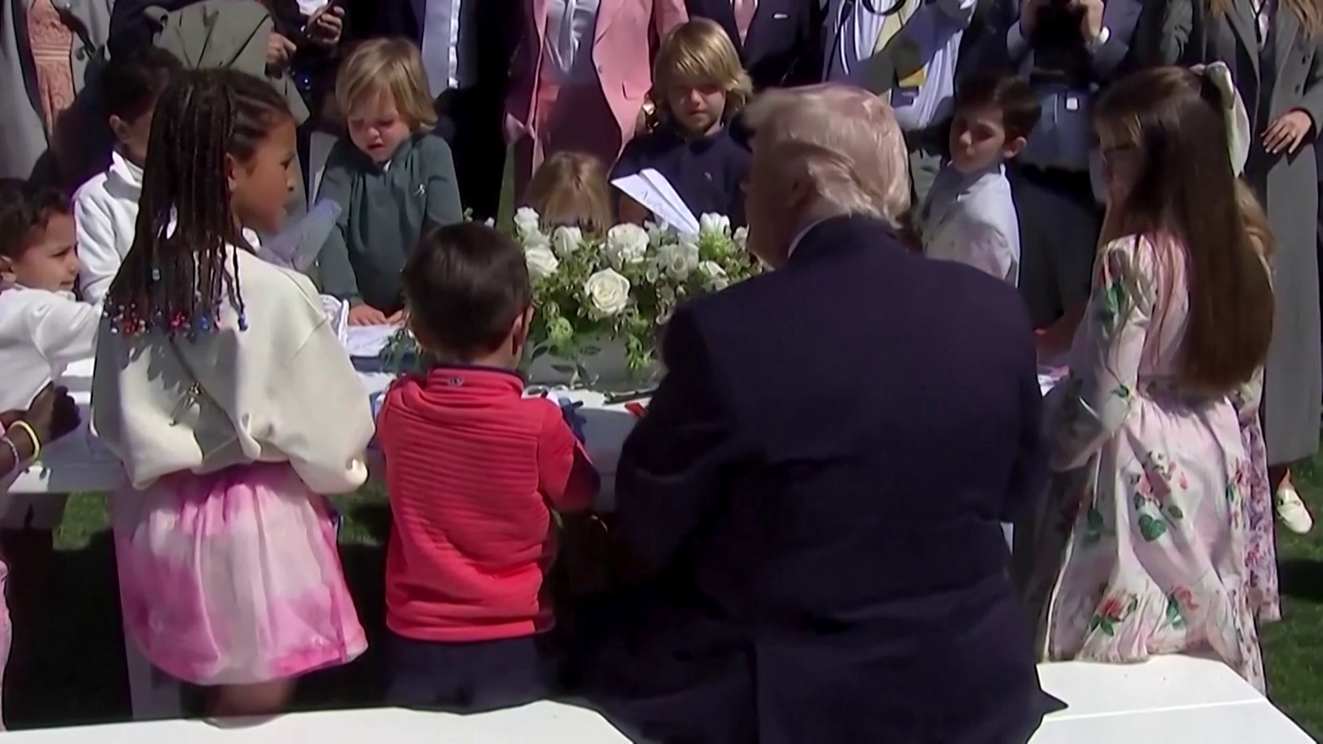 VIDÉO - Donald Trump a participé lundi à la chasse aux œufs organisée chaque année à l’occasion de Pâques à la Maison-Blanche et en a profité pour critiquer son prédécesseur devant des enfants.