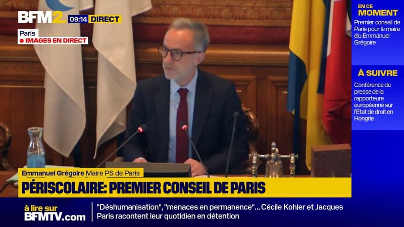 BFM-Politique-Parti socialistePlan d'action pour le périscolaire: "Chaque violence sur enfant donnera lieu sans délai à une suspension conservatoire de l'agent", prévient le maire de Paris Emmanuel GrégoireLe nouveau maire PS de Paris Emmanuel Grégoire s'exprime lors du conseil de Paris, mardi 14 octobre, lors d'une session extraordinaire consacrée au périscolaire.Aujourd'hui à 12h45 | Durée : 0:38PartagerX