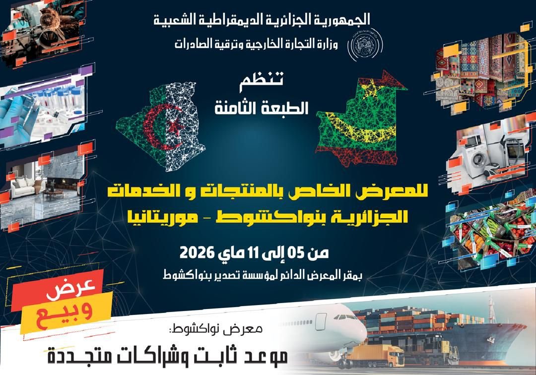 Selon le ministère, l’organisation de cet événement, qui se déroulera au showroom permanent de la société Tasdir (filiale du groupe SAFEX) à Nouakchott, « s’inscrit dans le cadre des efforts déployés en faveur de la promotion des exportations et du renforcement de la présence des produits algériens sur les marchés africains, en vue de faire connaître les biens et services algériens, de mettre en avant leur qualité et leur diversité, d’ouvrir de nouvelles perspectives de partenariat et de renforcer les échanges commerciaux entre les deux pays ».