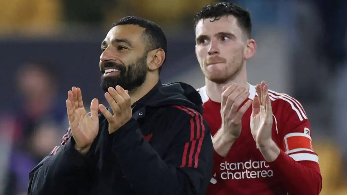 Liverpool a décroché une victoire 2-1 contre Everton, mais l’attention s’est déplacée après le coup de sifflet final lorsque les coéquipiers ont poussé Salah et Robertson devant les supporters, dans ce qui ressemblait à un hommage anticipé à leur départ attendu à la fin de la saison.