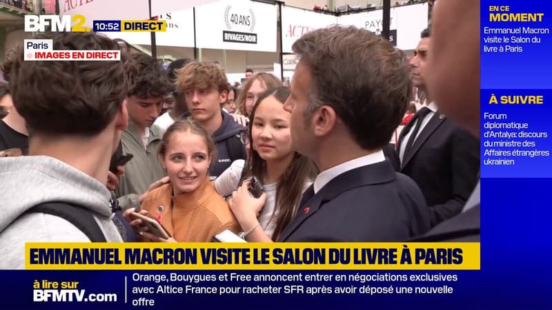 BFM-Politique-Elections-Election présidentielle 2027Présidentielle 2027: "Jamais craintif, déterminé", répond Emmanuel Macron à un étudiantEmmanuel Macron en visite au Salon du livre à Paris, ce vendredi 17 avril, est interrogé par un étudiant à propos des prochaines élections présidentielles de 2027.Aujourd'hui à 10h58 | Durée : 0:30PartagerX